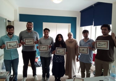 Our calligraphy workshop, led by our experienced teacher at the school, introduces foreign students to the art of Arabic script. Through guided practice, students learn the basic strokes, forms, and styles of traditional calligraphy, gaining a deeper appreciation for the beauty and cultural significance of the Arabic language.